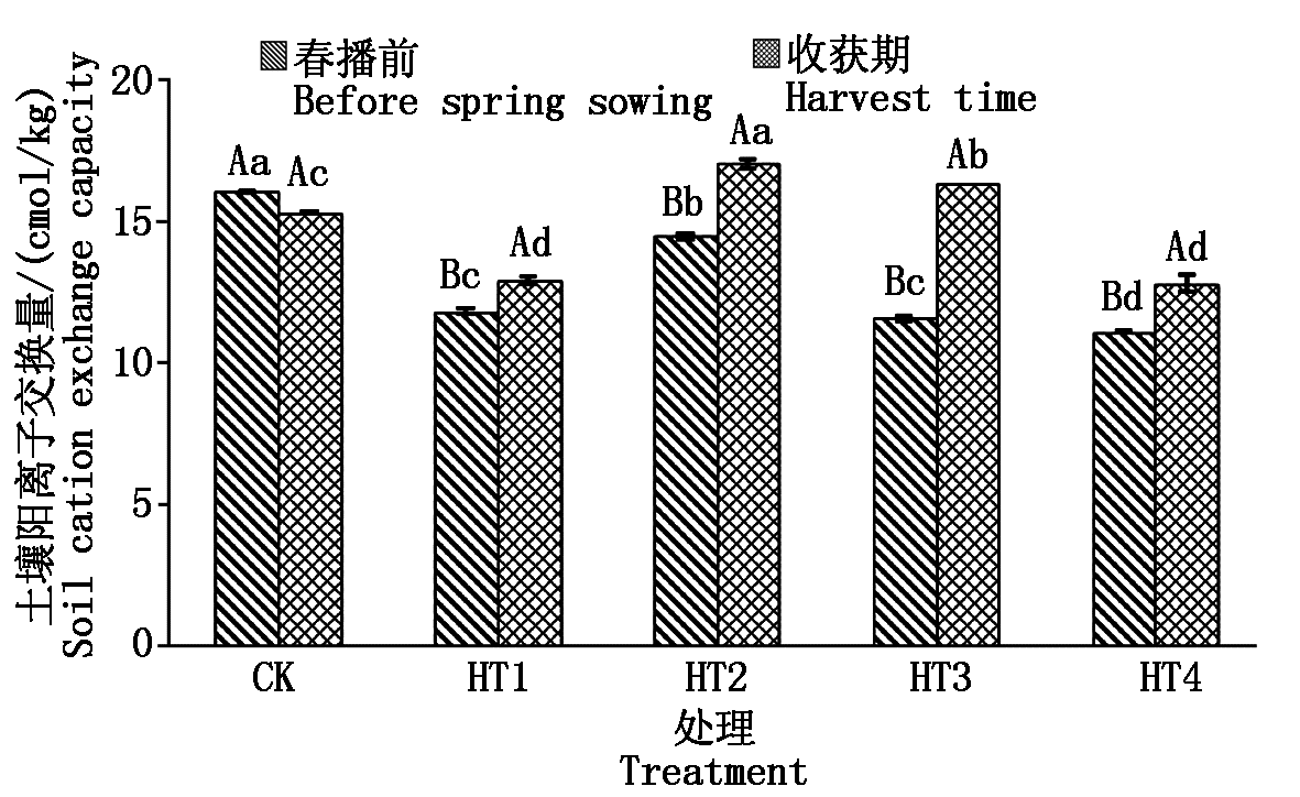 为内蒙古平原灌区春玉米连续高产稳产过程中秸秆培肥高产田和改良盐碱田提供理论依据。设置了玉米秸秆还田1~4 a(HT1~HT4)定位试验,以秸秆不还田作为对照(CK),测定了春播前和收获期土壤有机碳含量、全氮含量、有效氮含量、有效磷含量、阳离子交换量、pH值和酸碱缓冲曲线。结果表明,HT1~HT4收获期与春播前相比土壤有机碳含量、全氮含量、有效氮含量、有效磷含量、阳离子交换量的相对变化率为1.34%~3.62%,0.20%~1.51%,-0.11%~0.78%,0.89%~6.36%,0.09%~0.41%,CK收获期与春播前相比土壤有机碳含量、全氮含量、有效氮含量、有效磷含量、阳离子交换量的相对变化率为1.57%,-0.02%,-0.45%,-0.15%,-0.05%;HT2、HT3、HT4比CK的土壤pH值显著降低;土壤对碱的缓冲能力依次为HT4>HT3>HT2>HT1>CK。综上所述,随秸秆还田年限的增加,土壤固碳能力、保肥能力和缓冲性能增大,有效抵御因施化肥等因素导致土壤pH值剧烈变化的能力增强,秸秆还田培肥改土措施显著提升了土壤质量。
