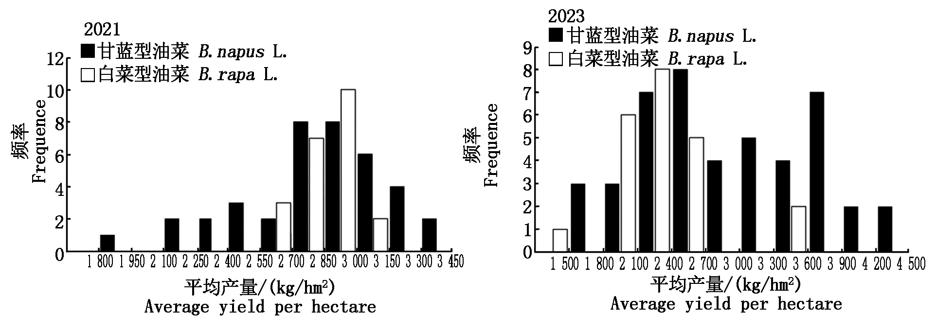 摘要: 为了探究北方寒旱区白菜型油菜与甘蓝型油菜的越冬率、产量差异,各农艺性状与平均产量之间的相关关系与抗寒优势性状,以45个甘蓝型油菜与22个白菜型油菜品种为研究对象,统计分析了甘蓝型油菜与白菜型油菜的越冬率、平均产量与各农艺性状,挑选并统计了产量水平相近的甘蓝型油菜与白菜型油菜在不同密度种植条件下的产量,比对了甘蓝型油菜与白菜型油菜苗期根系性状的差异。结果表明:67个油菜品种中,白菜型油菜的越冬率平均水平(97.59%)显著高于甘蓝型油菜(65.87%),甘蓝型油菜的产量潜力要高于白菜型油菜。对于能够稳定越冬的白菜型油菜,增加播种密度虽然显著提高了有效株数,但是不能提高产量;而对于甘蓝型油菜,其较低的越冬率限制了有效株数的提高,从而限制了平均产量。目前具有高越冬率的甘蓝型油菜品种越冬后表现出更高分枝部位与结角密度,更少二次分枝数、总分枝数与单株有效角果数的农艺性状。甘蓝型油菜与白菜型油菜根系性状之间的对比显示,膨大的根系、短下胚轴及生长点位于地面以下,是白菜型油菜强抗寒性的优势性状。培育具有白菜型油菜根系性状特点、生长点位于地面以下的耐密甘蓝型油菜,是提高甘蓝型油菜越冬率,促进油菜产量提升,确保油料供给的重要育种方向。