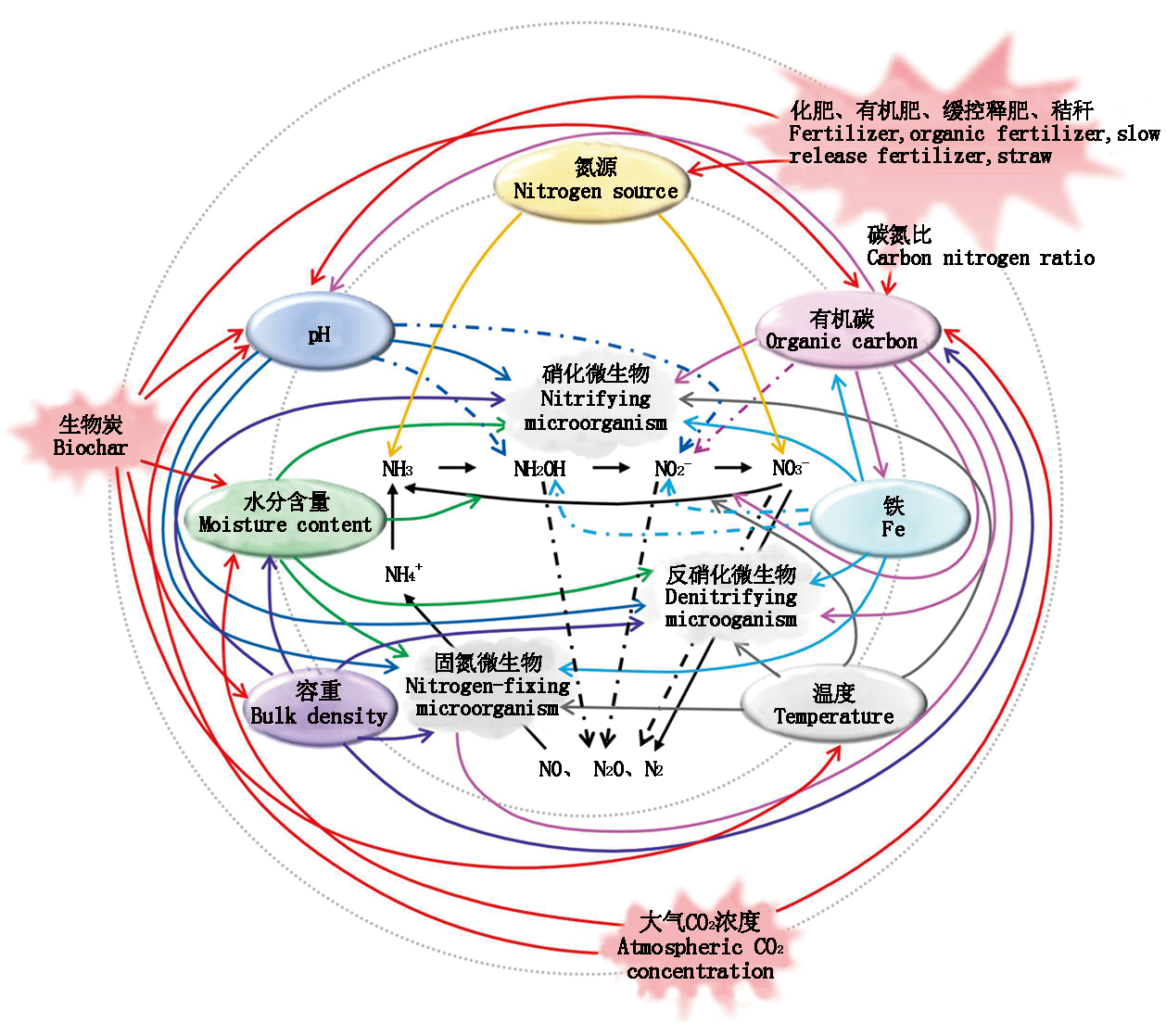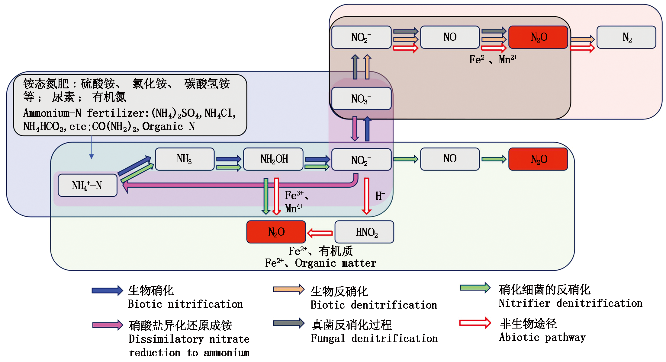 Key words: Farmland soil, Nitrous oxide, Biotic pathway, Abiotic pathway, Influencing factor