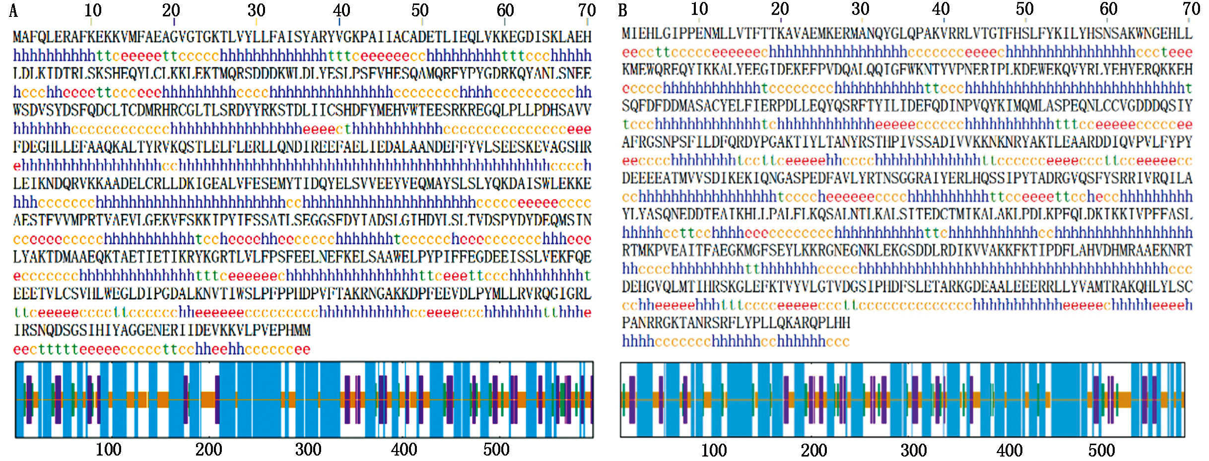 枯草芽孢杆菌ZA1具有良好的抑菌和促生作用。解旋酶已被证实为核酸代谢关键蛋白复合体,且解旋酶超家族成员通过特异性切割DNA/RNA分子中的磷酸二酯键,在遗传信息传递过程中执行关键催化功能。为明确解旋酶基因ypvAyjcD在枯草芽孢杆菌ZA1抑菌过程中的潜在作用,以枯草芽孢杆菌ZA1为材料,克隆ypvAyjcD基因,利用生物信息学分析它们的序列特征,通过亚细胞定位检测2个基因的位置,对2个基因及其编码蛋白的结构与功能特性进行初步解析。结果表明,克隆获得的ypvAyjcD基因编码区全长分别为1 791,1 767 bp,分别编码596,588个氨基酸,其编码蛋白的预测相对分子质量分别为68.804 01,68.275 08 ku,理论等电点分别为4.81,8.25,且亲水性较弱。ypvA和yjcD的蛋白空间结构主要由α-螺旋、β-折叠和大量无规则延伸链组成的紧密结构。亚细胞定位于细胞质和细胞核中,不存在跨膜区及信号肽,为非分泌蛋白。分析保守结构域得到ypvA属于Rad3相关DNA解旋酶DinG家族,基因yjcD属于UvrD超家族I DNA或RNA解旋酶,通过进一步的蛋白质系统进化树分析明确将这2个蛋白鉴定为ATP依赖性解旋酶。因此,通过克隆枯草芽孢杆菌ZA1中的ypvAyjcD基因并分析序列为非分泌性ATP依赖性解旋酶。