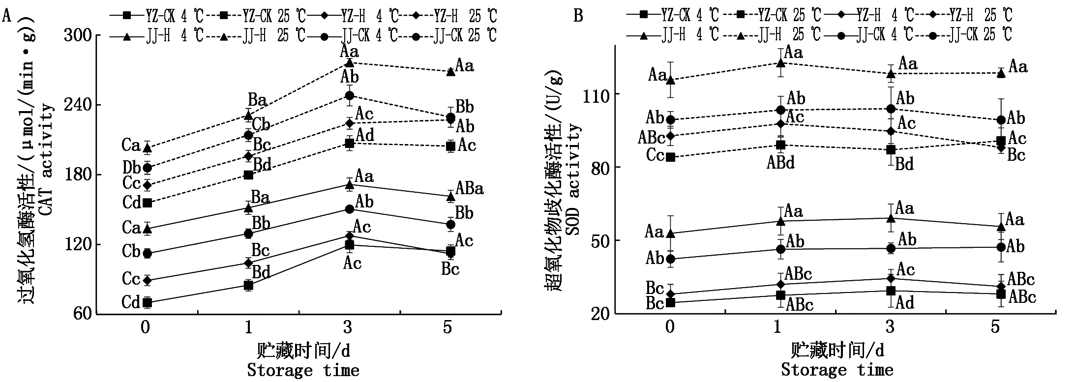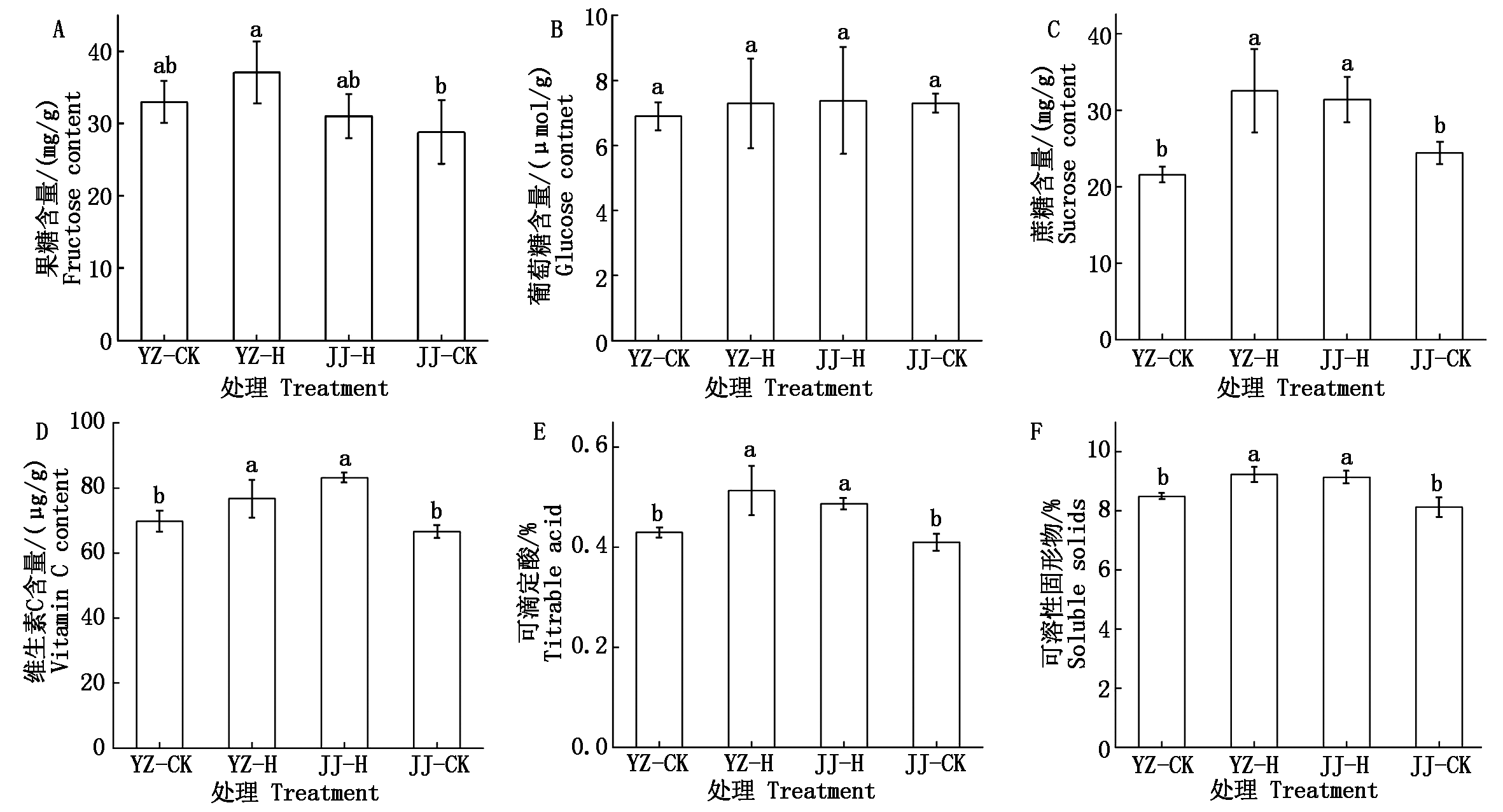 通过研究富氢水(H)和普通水(CK)浇灌生长的草莓品质及抗氧化能力,揭示富氢水对提升草莓品质,延长草莓保鲜期的影响作用,为有效减少化肥农药的使用,提高草莓口感品质和食用安全性提供合理依据。以冀九和玉珠草莓为材料,采用富氢水和自来水分别浇灌草莓根部,通过对果实品质指标可溶性固形物、可滴定酸、果糖、葡萄糖、蔗糖、维生素C含量及保护酶超氧化物歧化酶(SOD)和过氧化氢酶(CAT)活性进行测定,并分别对根系、叶片的形态特征及叶片的叶绿素含量及光合速率进行测定。结果表明,富氢水处理的草莓果实可溶性固形物、可滴定酸、蔗糖、维生素C含量显著高于普通水处理,且随机森林分析显示,可滴定酸、蔗糖和维生素C是主要影响草莓可溶性固形物的因子。富氢水处理的草莓根系的长、体积、表面积、直径及根尖数量和叶片的长、宽和叶面积及叶绿素和光合速率显著高于普通水处理。25 ℃储存条件下草莓的CAT和SOD活性显著高于4 ℃,且富氢水处理的草莓酶活性显著高于普通水处理。随着草莓储藏时间的延长,CAT活性呈现先升高后降低的趋势,并在第3天最高,SOD活性随着贮藏时间的延长无显著变化。以上结果说明,富氢水可提升草莓口感和品质,延长草莓的保鲜期及货架期,达到提质增效的目的。