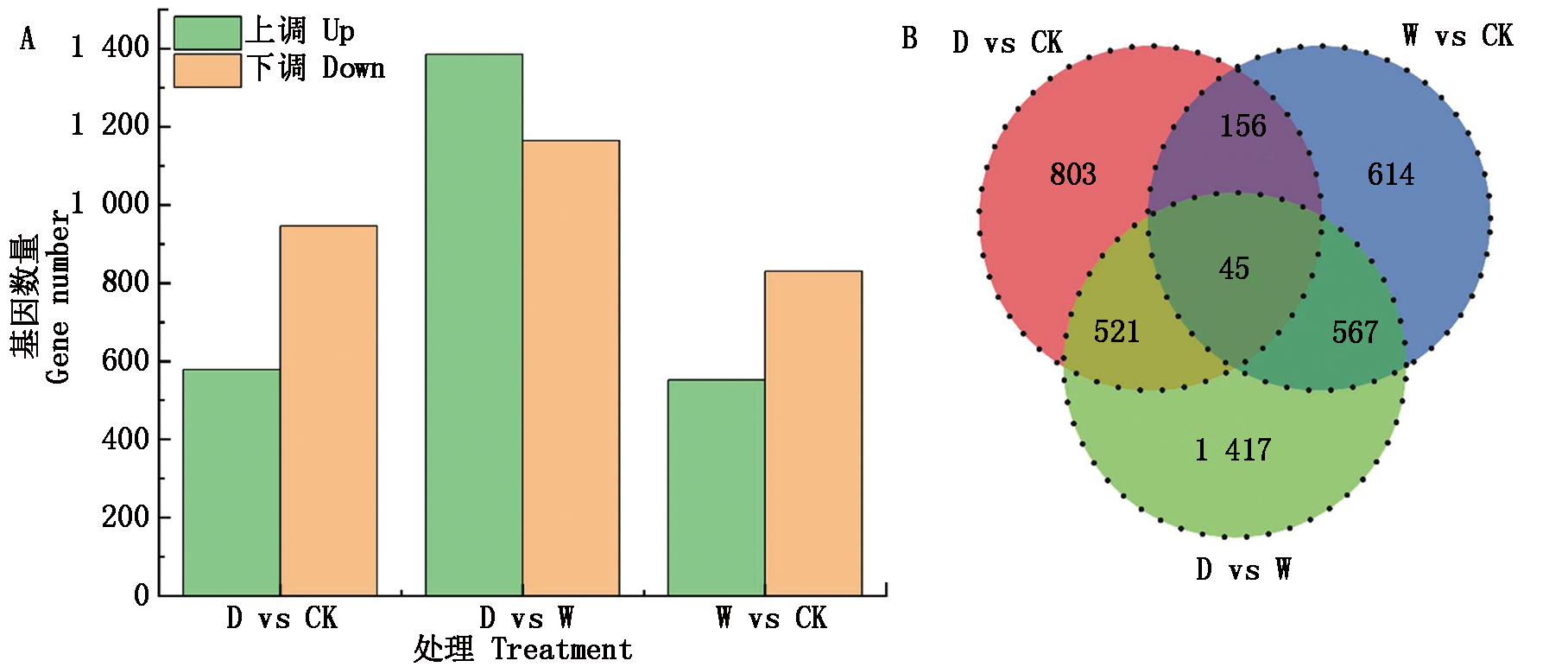 大豆萌发阶段遭受低温胁迫会对产量造成巨大影响。为挖掘大豆萌发期低温胁迫响应相关基因,探究大豆萌发期耐低温的生物学过程,对8个萌发期低温耐性存在显著差异材料萌发3 d的种子进行了转录组测序。筛选耐低温材料与低温敏感材料间差异表达基因(DEGs),并对差异表达基因进行GO富集分析、KEGG富集分析和转录因子分析。在15个低温耐性差异对比组中筛选到231个共有差异表达基因,其中159个DEGs在冷敏感大豆中表达上调,72个DEGs在冷敏感大豆中表达下调。GO富集分析结果显示,DEGs主要集中在细胞过程(GO:0009987)、代谢过程(GO:0008152)、生物调节过程(GO:0065007)、对刺激的反应(GO:0050896)、结合(GO:0005488)、转运蛋白活性(GO:0005215)和转录调节剂活性(GO:0140110)等生物学过程。KEGG富集通路分析发现,DEGs主要富集在淀粉和蔗糖代谢通路(ko00500)。参与种子发育的基因Glyma.03G144400、Glyma.19G147200、Glyma.10G027600、Glyma.10G247500、Glyma.20G147600,参与代谢反应的基因Glyma.05G004300、Glyma.17G086400和编码谷胱甘肽氧化酶的基因Glyma.01G219400均在冷敏感材料中上调。在231个差异表达基因中共鉴定出15个转录因子,属于MYB、AP2/ERF、NAC等转录因子家族。说明大豆通过调节多种生物学过程、物质代谢和信号传导来应对萌发期低温胁迫。
