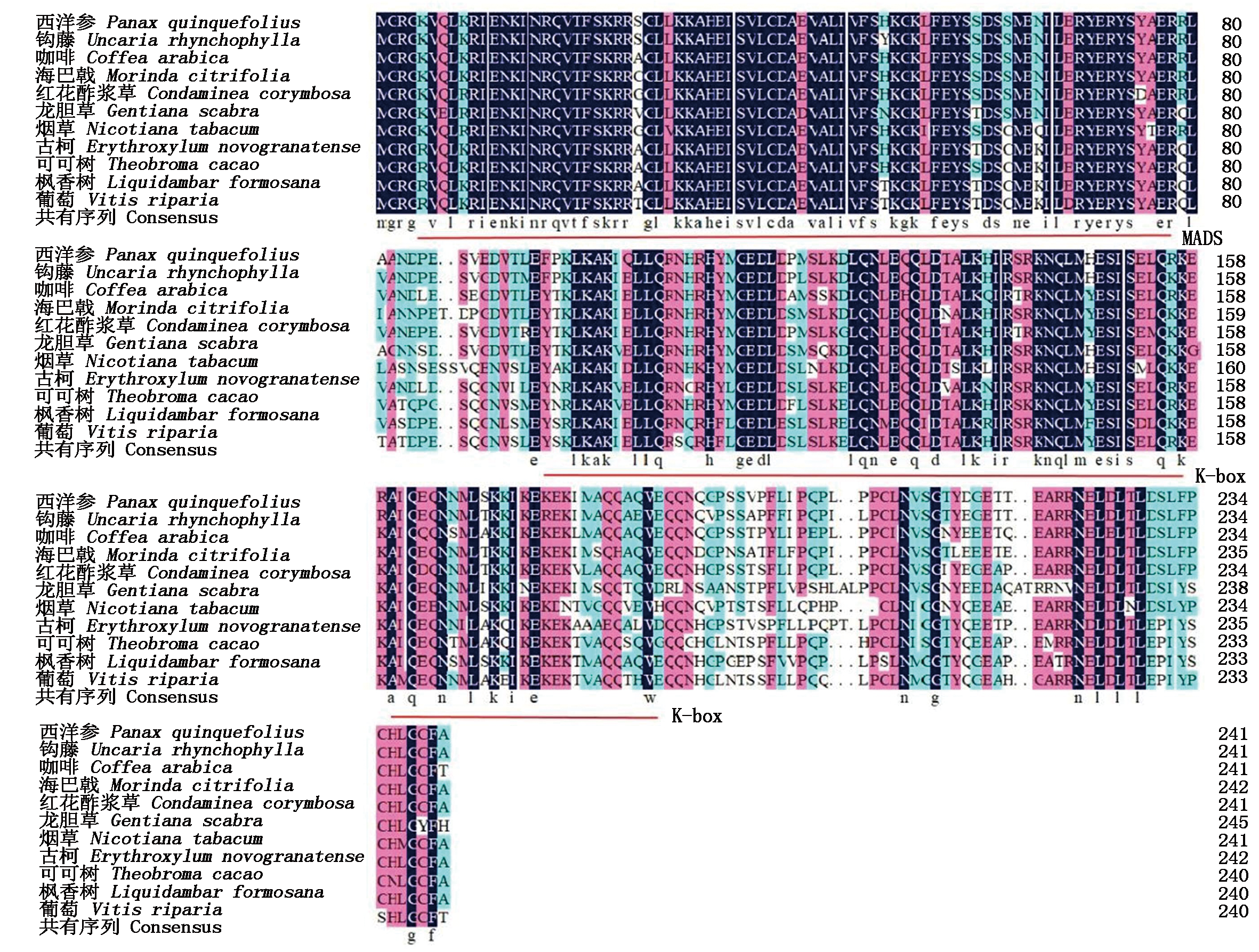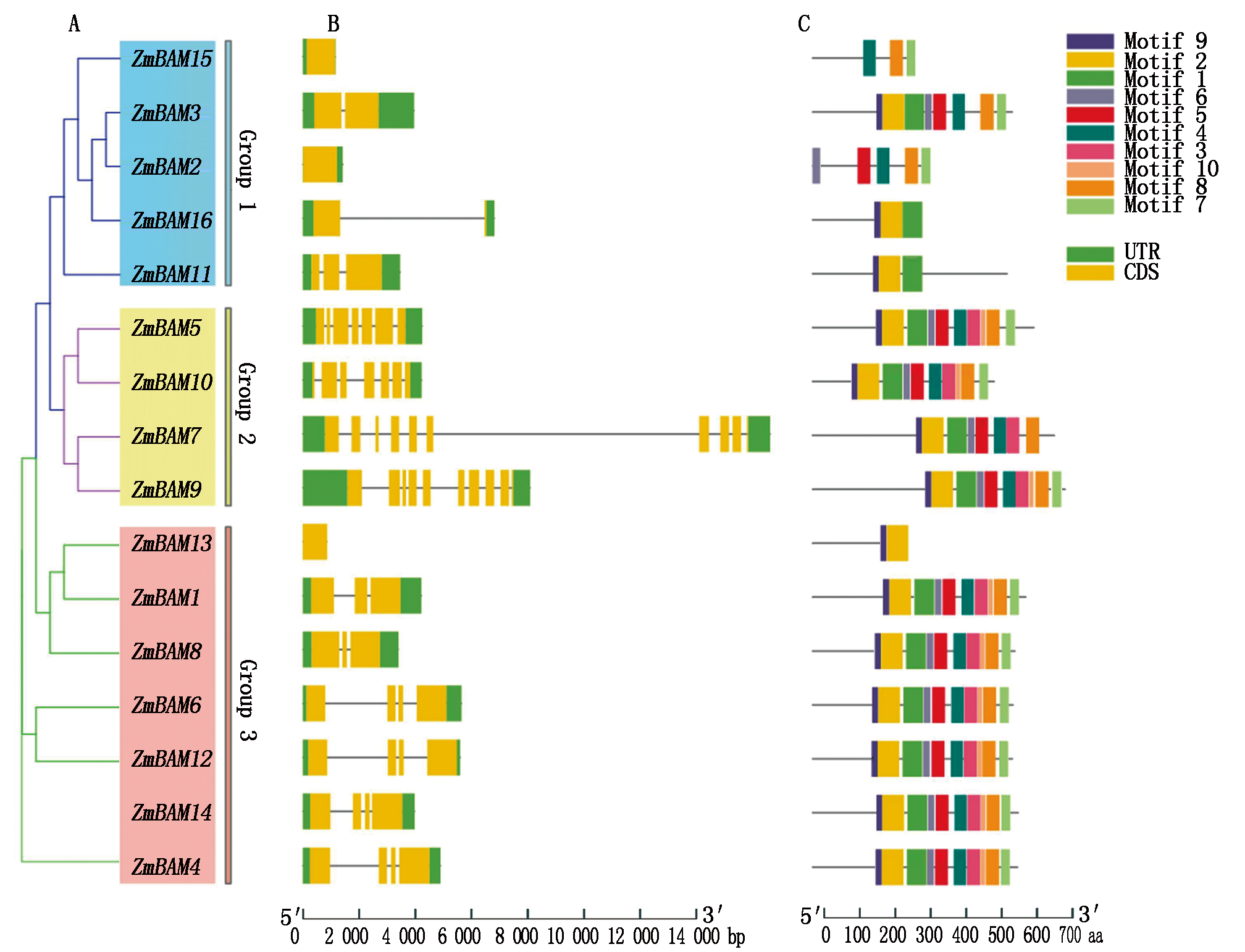 β-淀粉酶(BAM)在植物体内参与多种生物学过程的调控,并能对激素与非生物胁迫等多种外界刺激做出响应。为了解玉米BAM家族的特征和表达模式,利用生物信息学方法,对玉米BAM基因家族成员进行了全基因组鉴定,并分析了其编码蛋白、染色体定位、基因结构、顺式作用元件、共线性、组织表达特异性以及模拟雹灾和施用褪黑素处理后基因的表达模式。结果表明,在玉米中鉴定出16个ZmBAM成员且均具有典型的Glyco_hydro_14结构域,且大多数为亲水蛋白。系统发育分析显示,ZmBAM蛋白可分为3个类群,相同类群具有相似的基因结构及基序分布。顺式作用元件分析表明,大部分ZmBAM基因的表达可能与植物激素、非生物胁迫和光反应等相关。共线性分析结果显示,玉米与拟南芥和大豆BAM基因家族有一定的同源性,与水稻亲缘关系更近。qRT-PCR分析发现,在模拟雹灾胁迫下,大部分基因呈上调趋势,施用褪黑素后显著上调,为进一步揭示玉米BAM基因家族在响应非生物胁迫中的功能提供了参考依据。