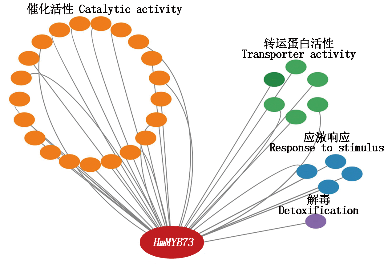 绣球是一种高耐铝且铝积累能力强的观赏植物,花色易受土壤pH值和萼片Al3+含量影响,但其耐铝机制尚不十分清楚。MYB转录因子家族在植物逆境响应中具有重要作用,为研究其在绣球耐铝中的功能,以大叶绣球无尽夏为材料,对HmMYB73基因进行克隆、生物信息学、共表达网络、表达模式分析以及酵母功能验证。结果表明,HmMYB73编码266个氨基酸,具有典型的R2R3结构域,属于R2R3-MYB亚家族;与HmMYB73共表达的基因参与催化、转运、应激响应和解毒等生物学功能;铝处理下,HmMYB73在绣球根、叶和萼片中均显著上调表达,其中根部表达量最高,是对照的16倍;过表达HmMYB73可显著增强酵母对铝胁迫的耐受性。综上,HmMYB73可能参与绣球对铝胁迫的生物调节过程。