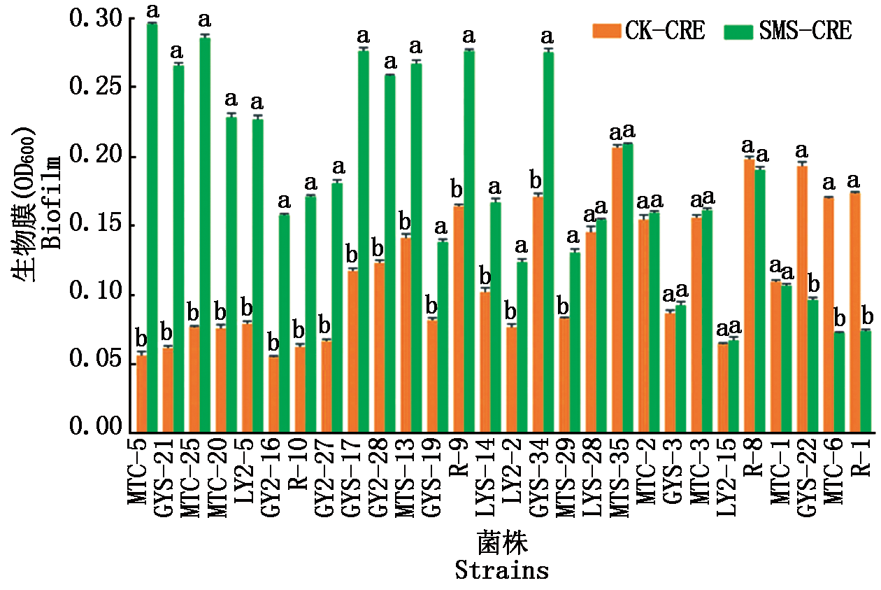 旨在建立一种基于根系分泌物的生防菌筛选体系,筛选具有根际强定殖能力的生防细菌,并利用该体系筛选与菌糠复配防治黄瓜枯萎病的细菌菌株。通过病原菌胁迫和菌糠诱导,调控黄瓜根系分泌物的化学组成,以待测菌株对根系分泌物的趋化性、代谢增殖和生物膜形成等定殖相关因素为定量指标,采用毛细管试验、96孔板培养和生物膜形成测定,实现根际强定殖细菌菌株的高效筛选。结果表明,从黄瓜根际分离的200株细菌对根系分泌物的趋化性、代谢增殖能力和生物膜形成能力存在显著差异。利用该筛选体系,筛选出的贝莱斯芽孢杆菌MTC-5菌株在所有筛选指标中均表现优异。温室试验结果表明,MTC-5菌株与香菇菌糠复配具有更强的根际定殖能力,并在防病和促生上表现出显著的协同增效作用。MTC-5和菌糠的复配菌剂对黄瓜枯萎病的田间防病效果为74.5%,比单独施用菌糠和MTC-5菌株的防效分别超出10.7,24.6百分点。建立了一个基于根系分泌物的高通量生防菌筛选体系,揭示了根系分泌物在细菌招募中的关键作用。基于该体系创制的MTC-5菌株与菌糠的复配菌剂在防治黄瓜枯萎病中展现出显著的协同增效,为生防菌筛选和应用提供了新的思路和技术支持。