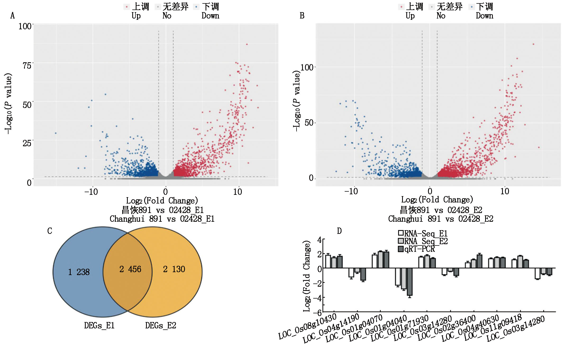 粒质量与粒形是决定水稻产量的关键因素,挖掘相关QTL(基因)对解析籽粒形成机制及指导高产育种具有重要意义。以籼稻昌恢891和粳稻02428构建的BILs群体为材料,利用高密度分子标记遗传图谱,对2个环境下的千粒质量、粒长、粒宽、粒厚和长宽比进行QTL定位研究。结合亲本开花后第5,10,15天的籽粒转录组数据,对QTL区间内的候选基因进行分析。频数分布表明,BILs群体粒质量与粒形呈现数量性状特征,适于QTL定位。在2个环境下,共检测到37个粒质量和粒形相关的QTL,包括海南三亚18个、江西南昌12个,以及两地共同检测到7个。全部QTL分布于水稻第1~5,7,8,11和12号染色体上,其中千粒质量相关7个、粒长相关5个、粒宽相关7个、长宽比相关11个、粒厚相关7个。分析表明,这些QTL的LOD值为2.79~43.10,贡献率为1.36%~46.12%。结合昌恢891和02428开花后第5,10,15天籽粒中差异表达的基因,在37个QTL中共获得28个候选基因,其中,LOC_Os11g10480和LOC_Os11g10100作为重点候选基因,将进行后续深入研究。