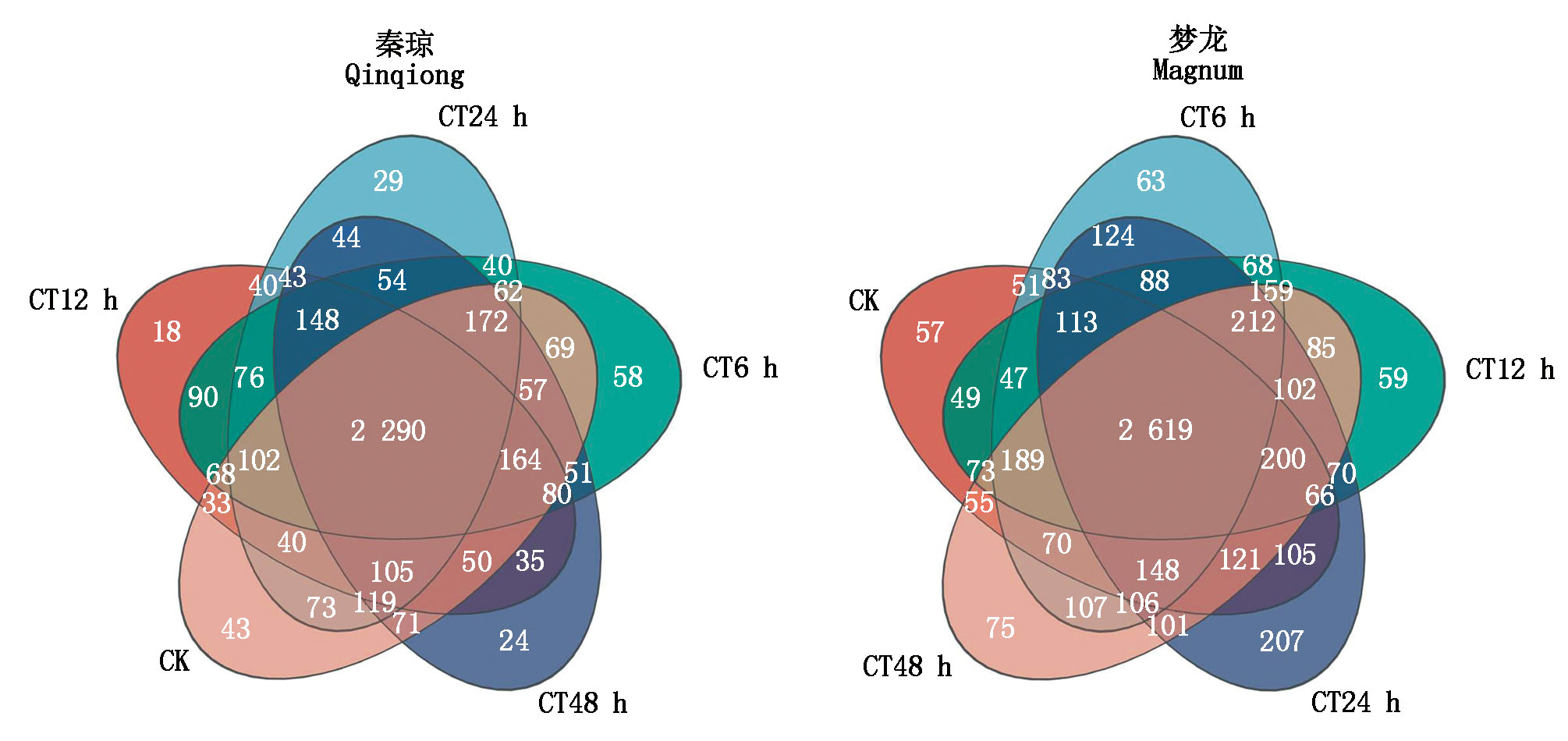 为探究秦琼(Q)燕麦和梦龙(M)燕麦在盐碱胁迫处理下根际土壤细菌群落多样性和土壤酶活性相互关系,采用细菌16S rRNA高通量测序技术和土壤酶活比色分析法,对秦琼和梦龙在盐碱胁迫处理0,6,12,24,48 h下根际土壤细菌群落结构和土壤酶活性进行对比分析。结果显示,在门水平上,秦琼根际土壤中放线菌门、变形菌门相对丰度占比高于梦龙。在属水平上,秦琼根际土壤中的芽孢杆菌属、节杆菌属相对丰度占比高于梦龙,但假单胞菌属相对丰度占比低于梦龙。盐碱胁迫48 h后,秦琼根际的土壤多酚氧化酶(S-PPO)、土壤过氧化氢酶(S-CAT)、土壤脱氢酶(S-DHA)、土壤转化酶(S-AI)活性是梦龙的1.32,1.53,1.38,1.28倍。且S-CAT活性与细菌ACE、Chao多样性指数呈显著正相关。秦琼可以通过改变优势菌群的相对丰度占比,影响细菌群落结构变化,提高细菌群落多样性指数与土壤酶活性,而梦龙根际的细菌群落变化不显著。土壤微生物群落多样性是决定燕麦品种耐盐碱能力的重要因素。