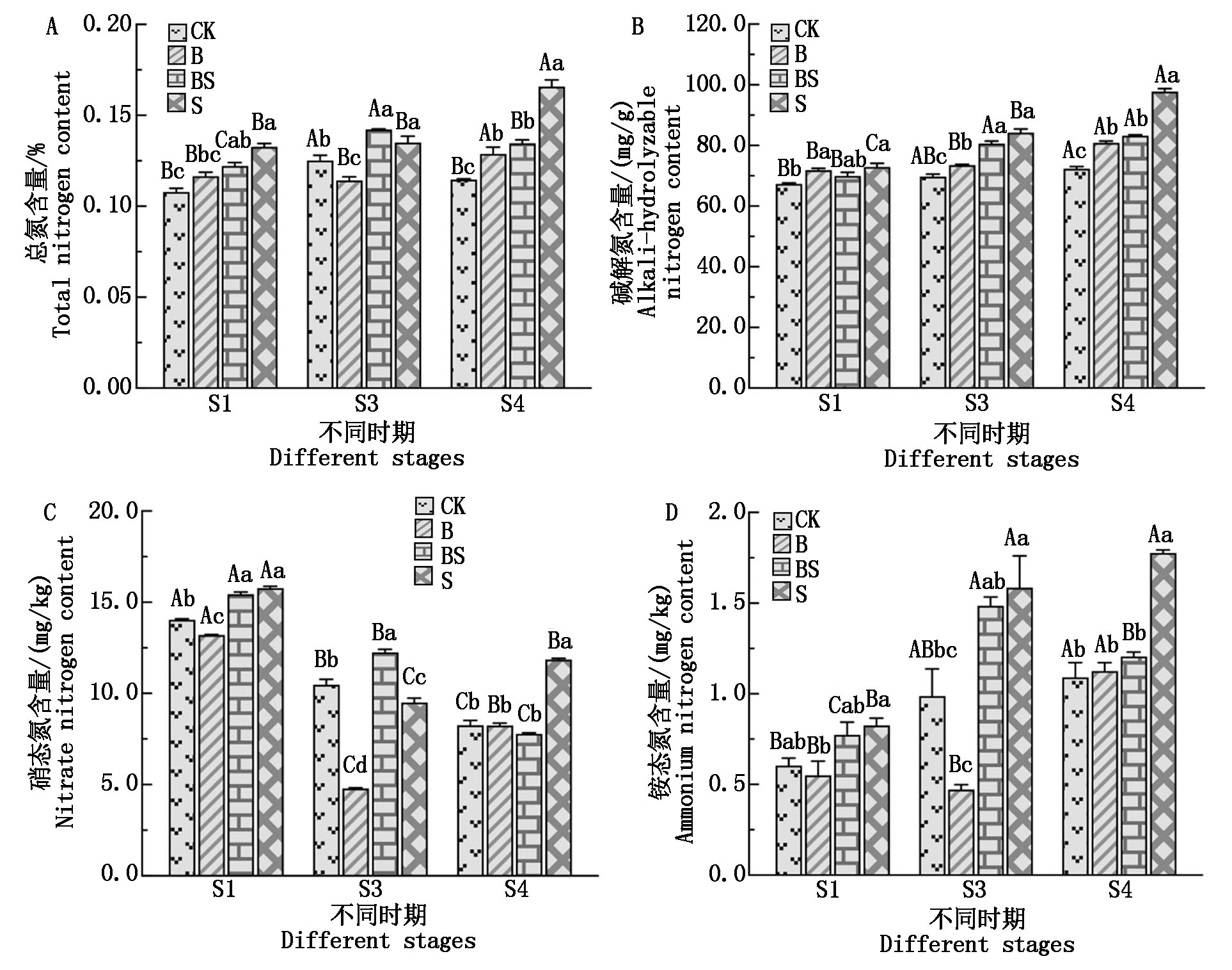 为解决设施土壤碳氮平衡及减排问题,通过田间试验,研究了夏填闲甜玉米与生物炭协同对设施土壤氮吸收减排及碳减排的影响。试验设计4个处理,即对照(T1)、填闲作物(T2)、生物炭(T3)、填闲作物+生物炭(T4)。结果表明:T4处理的玉米干生物量和氮吸收量分别比T2处理提高10.18%和9.49%;T3、T4处理的表层土壤有机碳较试验前分别增加25.26%和50.01%,T4处理的表层全氮降低10.13%,C/N升至14.9;T4处理的60~80 cm与80~100 cm土层硝态氮较试验前分别下降13.02%与5.68%,降幅显著高于其他处理;T4处理的非根际微生物量碳、氮较T1分别增加26.00%和20.33%,根际增幅低于非根际;CO2排放量以T4处理最低,为603.90 mg/m3,较T1降低24.61%。综上,填闲甜玉米与生物炭协同显著促进氮吸收,提高微生物量碳氮,减少碳氮淋失与排放,改善土壤C/N,为设施农田夏季休闲期碳氮管理提供理论依据支撑。