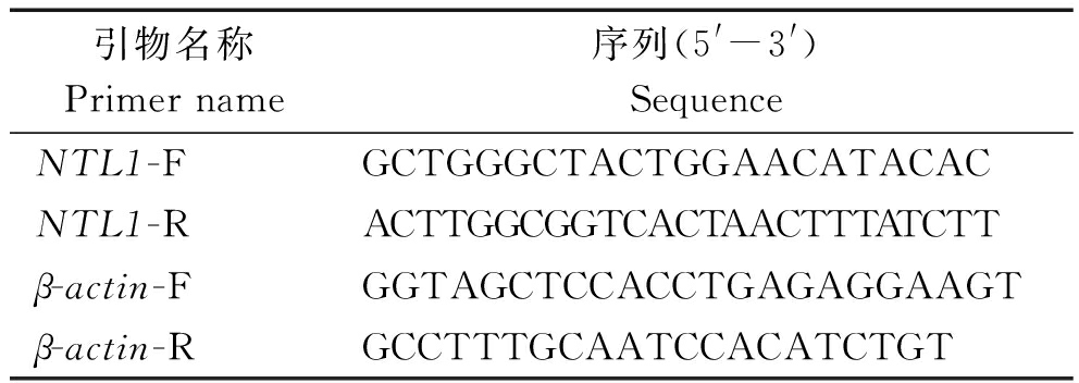 引物名称Primername序列(5'-3')SequenceNTL1-FGCTGGGCTACTGGAACATACACNTL1-RACTTGGCGGTCACTAACTTTATCTTβ-actin-FGGTAGCTCCACCTGAGAGGAAGTβ-actin-RGCCTTTGCAATCCACATCTGT