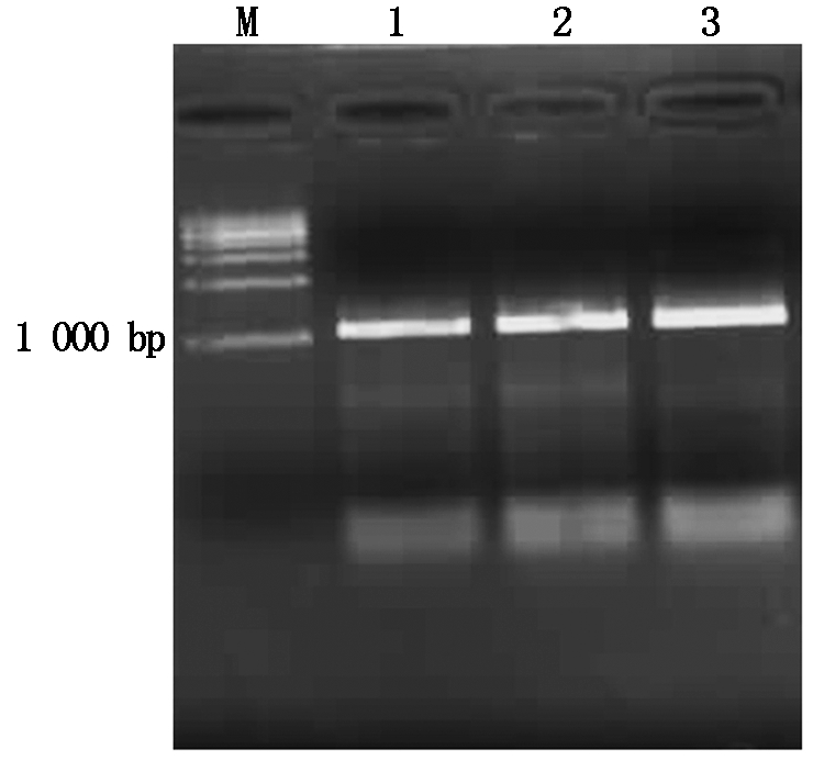 M.DNA 分子量标准;1~3.TaWRKY71a基因扩增产物。