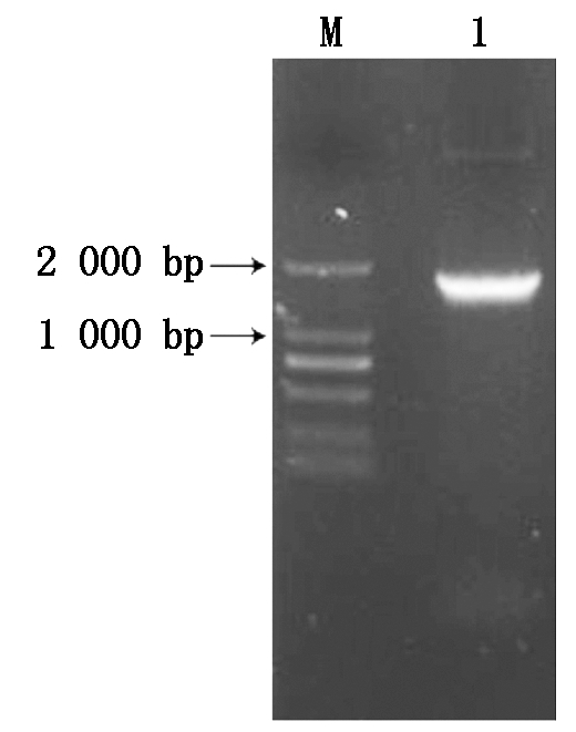 M.DL2000 DNA 分子量标记; 1.CmDWF1基因的cDNA扩增产物。