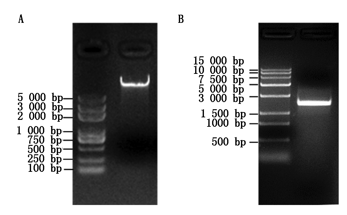Fig.1 The extraction of genomic DNA (A) and PCR amplification of GmDGAT1A promoter (B) in soybean