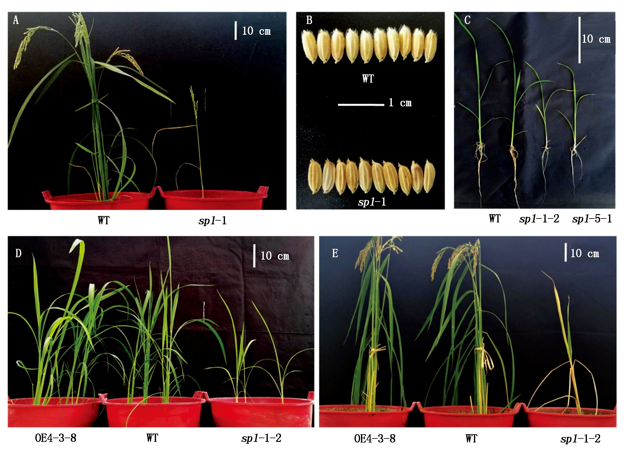 OsSP1基因编辑植株和过表达植株的表型和生理生化指标显示了OsSP1基因对水稻生长发育的重要调控作用,提高基因表达水平对水稻的生长和干旱抗性无明显影响,但基因突变严重影响水稻植株的生长发育和结实,其详细调控机制有待进一步发掘。