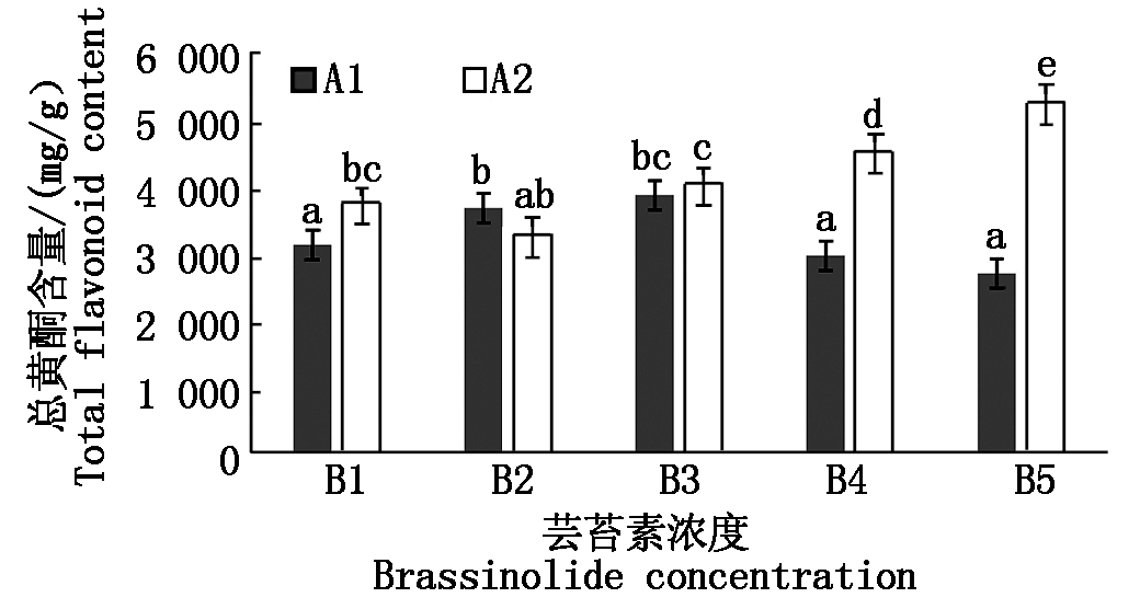 图3 不同浓度芸苔素处理对菜豆总黄酮含量的影响