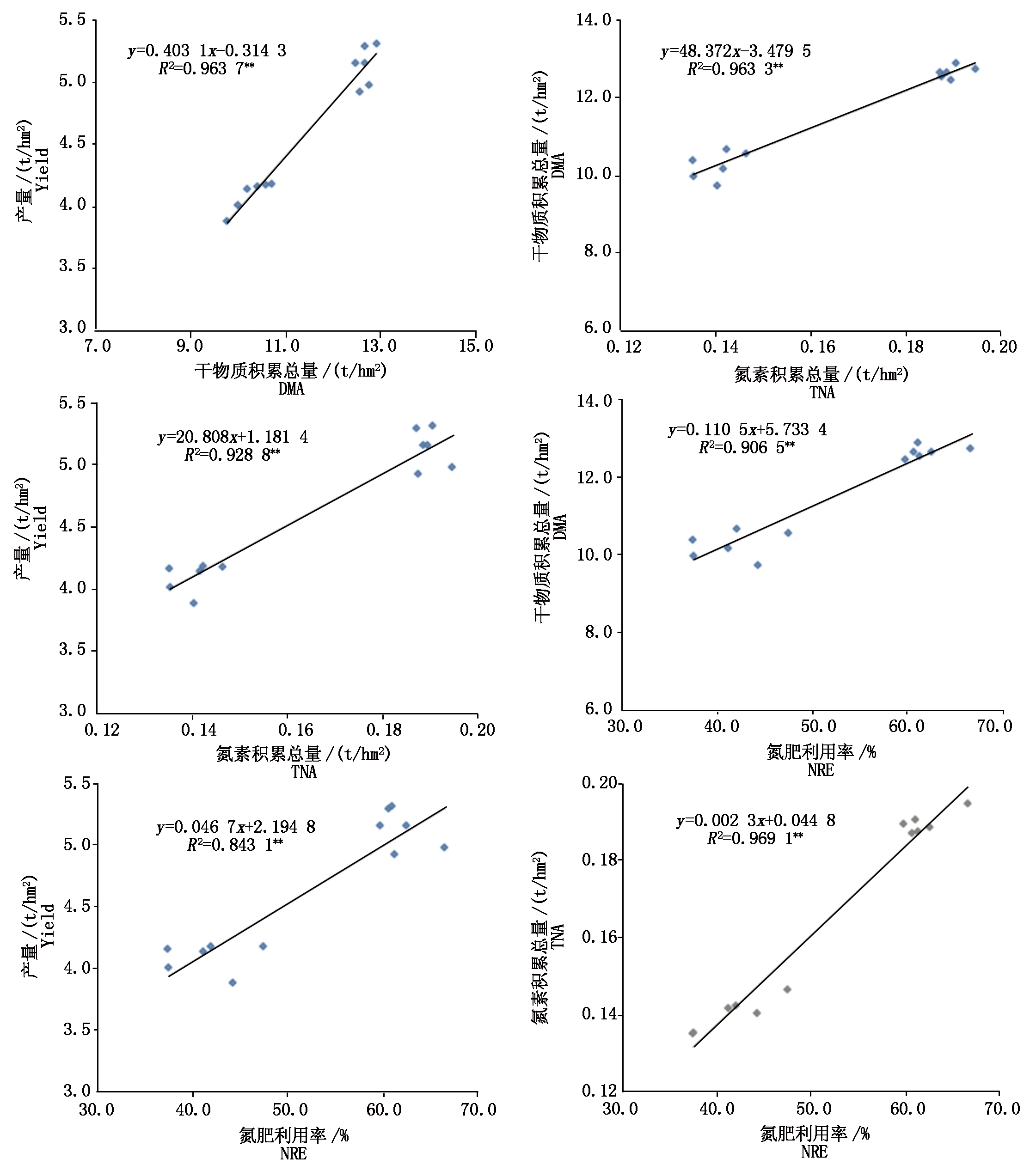 Fig.1 Relationship among yield,DMA,TNA,and NRE