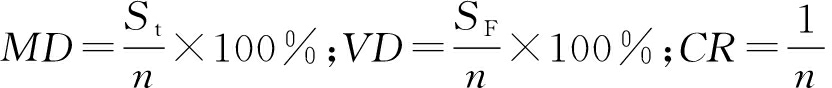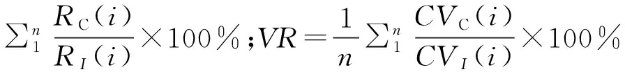 其中,n为数量性状总数,St为核心种质与原种质t测验得到的均值差异显著的性状数,SF为核心种质与原种质F测验得到的方差差异显著的性状数,RC为核心种质的极差,RI为原种质的极差,CVC为核心种质的变异系数,