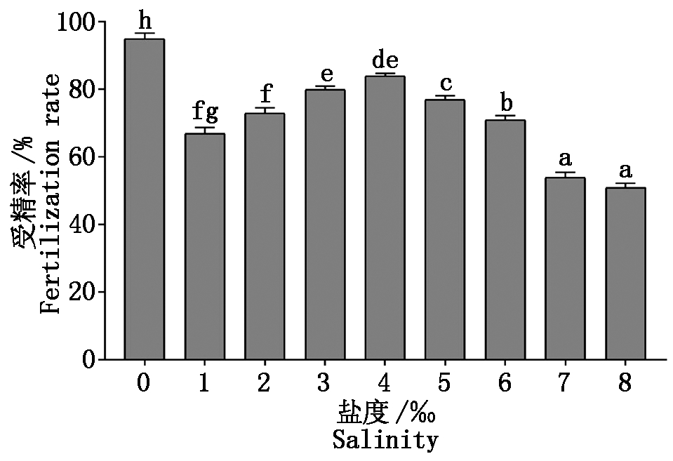 图2 不同盐度溶液下瓦氏雅罗鱼的受精率